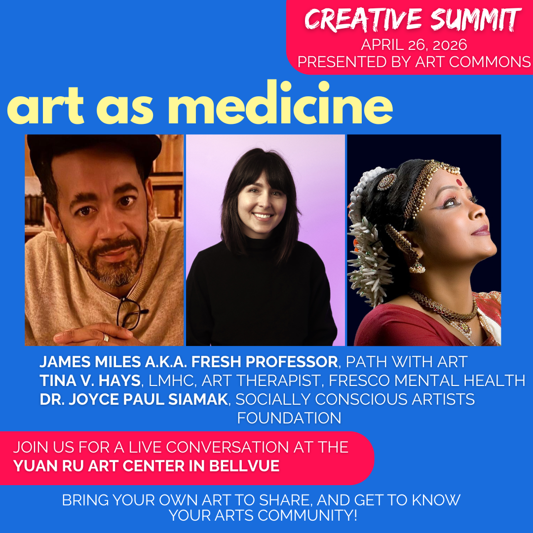 This Creative Summit will include a social hour, show and tell, and a timely, galvanizing panel discussion around the theme of “Art as Medicine.”