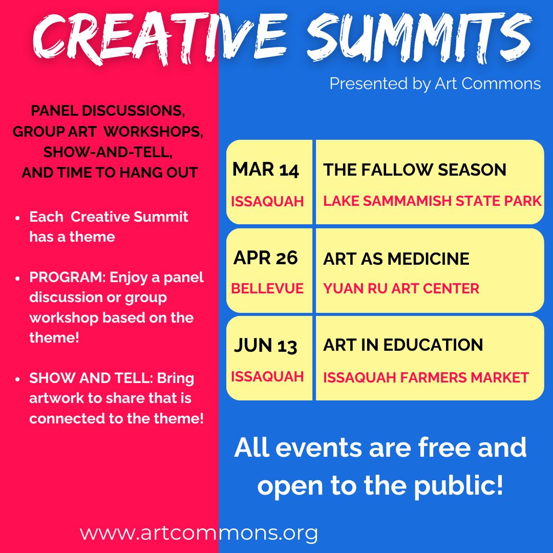 This Creative Summit will include a social hour, show and tell, a facilitated group meditation ritual, and a thought-provoking panel discussion around the theme of “The Fallow Season.” We will together explore the purpose of dormancy, the psychological experience of inaction, and the ways that art and life can flow from such spaces.